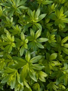 Galium odoratum « Le Vin de Mai » Vivace tapissante formant de jolies touffes au feuillage étoilé et aux délicates petites fleurs blanches floconneuses. Elle dégage